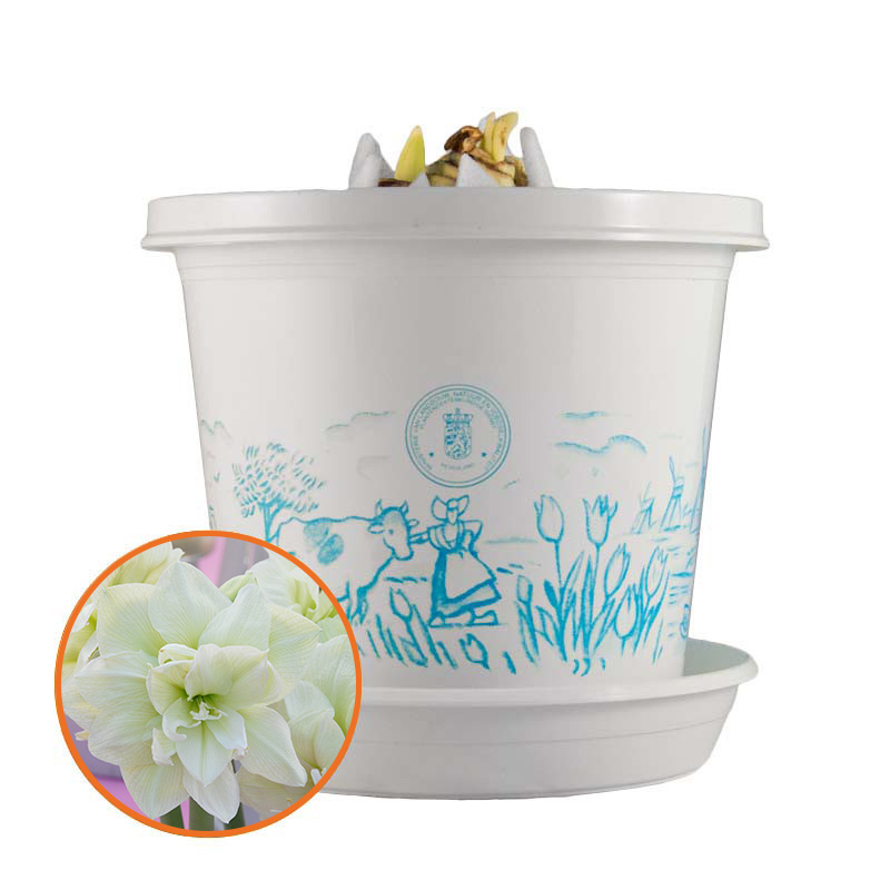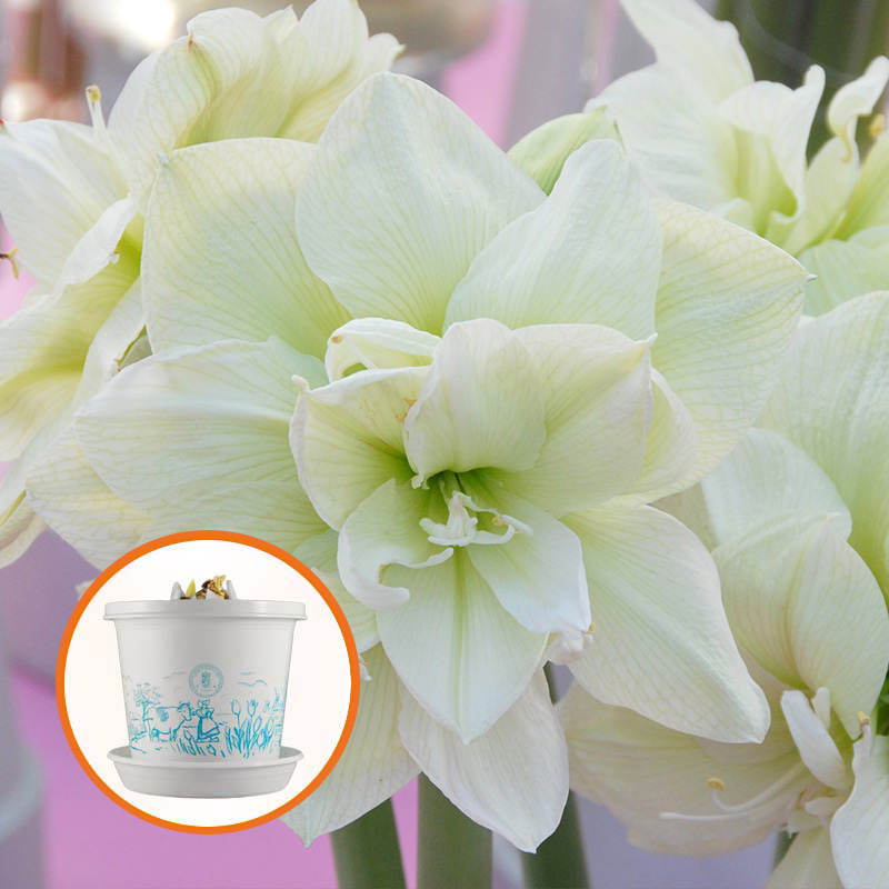 Haar dubbelbloemige uitstraling doet je even de mond snoeren, om zo even te genieten van haar pracht en praal. Haar uitstraling is magisch, geef haar een lichte plek en tempraturen van 20 tot 24 graden. Deze pure en natuurlijke beauty krijgt 2 stelen en 4 tot 5 bloemen. De Amaryllis is een ware tropische zonaanbidster, zon en licht en wat extra aandacht aan deze topper en je zult nog lang genieten van haar witte uitstraling.