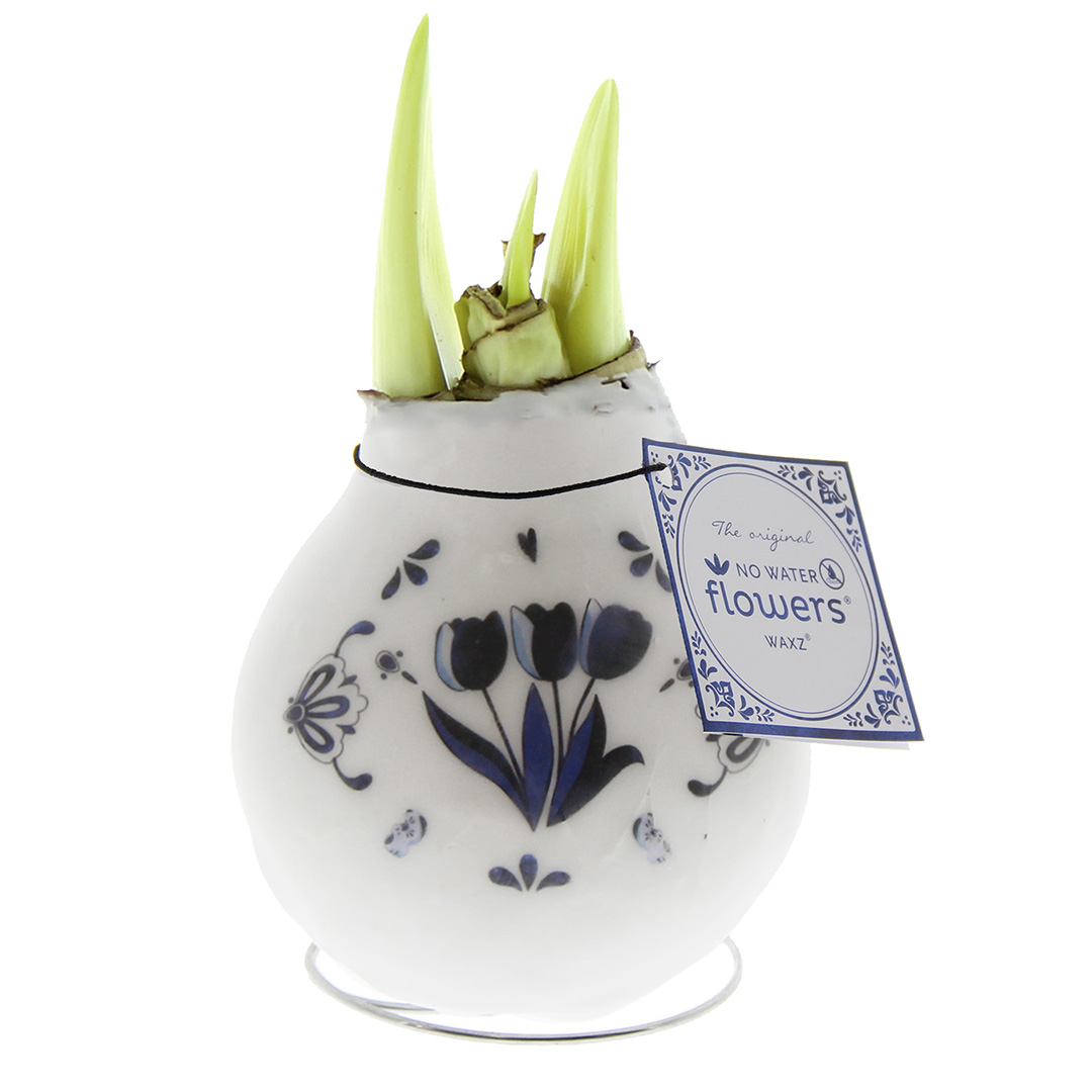 De bijzondere amaryllis bloem is bij QFB Gardening verkrijgbaar in twee soorten, de enkelbloemige amaryllis en de dubbelbloemige amaryllis. QFB Gardening verkoopt echter ook wax amaryllis. Je kant van augustus tot december een wax amaryllis kopen en ernaar uitkijken dat hij jouw huiskamer verlicht. Deze grote amaryllisbollen zijn er in verschillende kleuren, zoals groen, blauw, zwart of oranje, of met leuke motieven, zoals kerstsokken. Hij ontwikkelt zich binnen een paar weken van een klein groen blaadje tot een prachtige volledig amaryllis in wax.