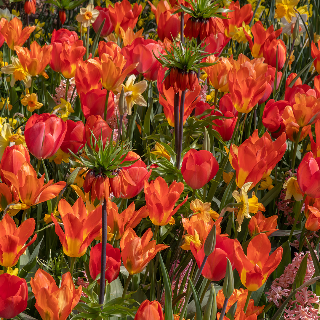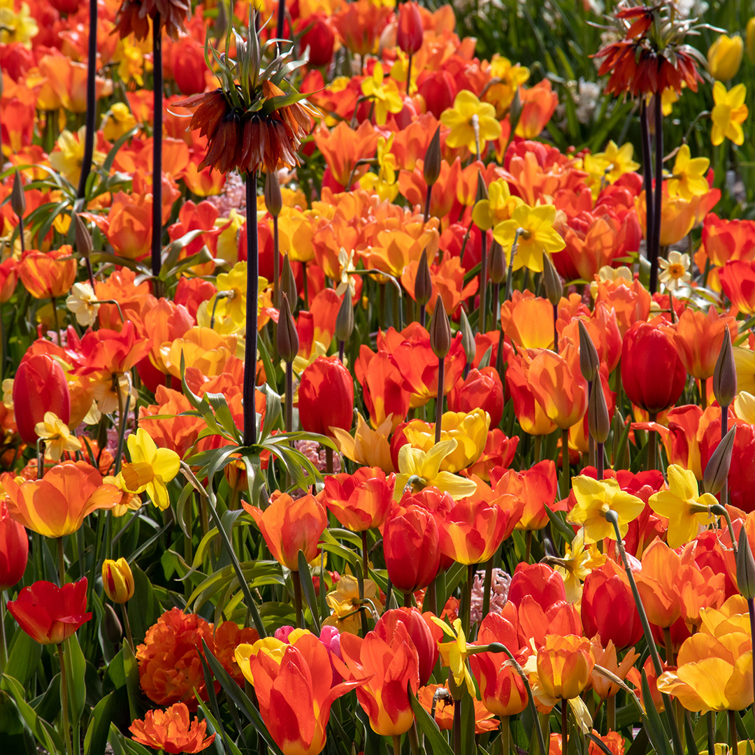 Deze vroegbloeiende bloembollen mix "on Fire" is een geweldige mix van voornamelijk tulpen maar ook andere indrukwekkende voorjaarsbloeiers, zoals o.a. narcissen en crocussen. De vrolijke kleuren rood, oranje, geel en het groen van het blad geven deze voorjaarsbloeiers mix een ongelooflijk mooie uitstraling.