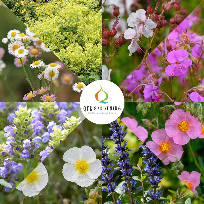 Een bed met bodembedekkers is ideaal als je niet veel tijd of zin hebt om je perk te wieden. Bodembedekkers verspreiden zich snel als een tapijt over een groot oppervlak en worden gekenmerkt door een geringe groeihoogte. Door hun dichte en lage groei zorgen bodembedekkers ervoor dat onkruid weinig kans krijgt om zich te verspreiden. Deze vaste plantenmix bestaat uit de volgende bodembedekkers: