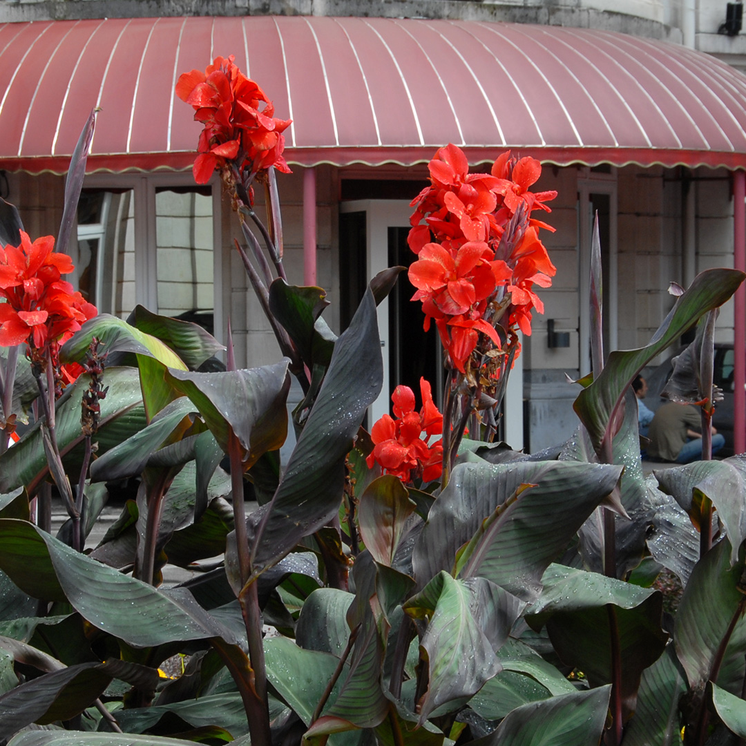 Deze op wortelstok geleverde Canna 'Black Knight' is een exotische verschijning met diep donkerbruin tot bijna zwart lancetvormig blad en prachtige dieprode bloemen die fier boven het blad uitsteken. Haar bloeitijd is van juli tot september, en ze voelt zich het meest op haar gemak op een warme, zonnige plek. Oorspronkelijk afkomstig uit de tropen, is deze schoonheid dol op warmte en zonlicht.