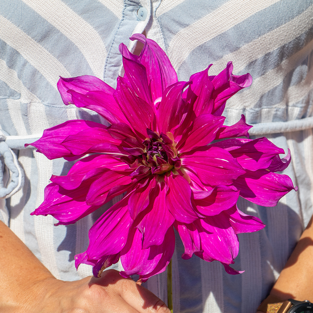 Deze dahlia is een echte blikvanger – of je haar nu solitair plant of combineert met lichtere tinten voor een spectaculair kleurcontrast. Ook zeer geliefd bij dahlialiefhebbers vanwege haar opvallende, langdurige bloei en stevige stelen.