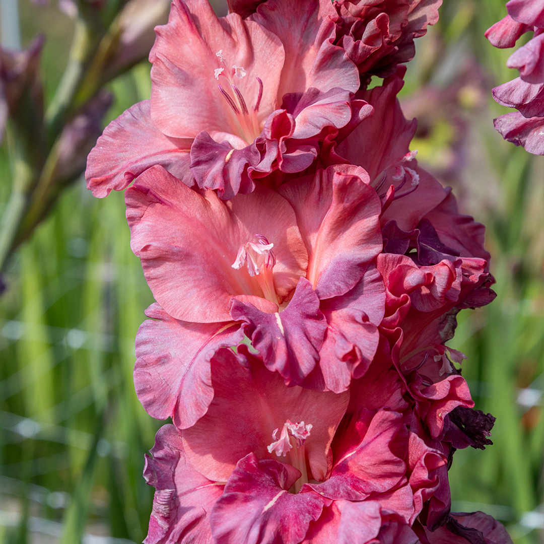 Dankzij de unieke, aardse kleur is de 'Rusty Chestnut' zeer gewild voor moderne boeketten en bloemstukken. In de tuin combineert deze gladiool prachtig met siergrassen, diepgele zonnebloemen of juist met contrasterende paarse vaste planten. De stevige stelen zorgen ervoor dat ze zelfs bij een zomerbui fier overeind blijft staan.