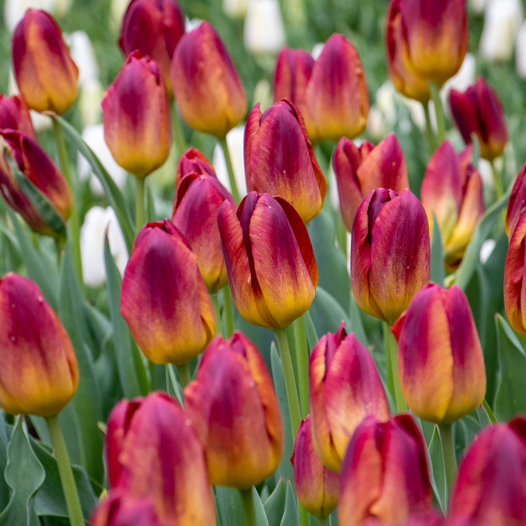 Tulp Amberglow heeft een unieke en prachtige kleurencombinatie. De tulp heeft een warmgele basis, die geleidelijk verkleurt naar kastanjebruin en donkerrood. Tulp Amberglow is een echte eyecatcher in uw tuin! Als de zon op de grote bloemen schijnt krijgen ze een magische gloed. Combineer de tulp Amberglow bijvoorbeeld met de donkerrode, pioenbloemige Uncle Tom en/of de bijna zwarte Paul Scherer.