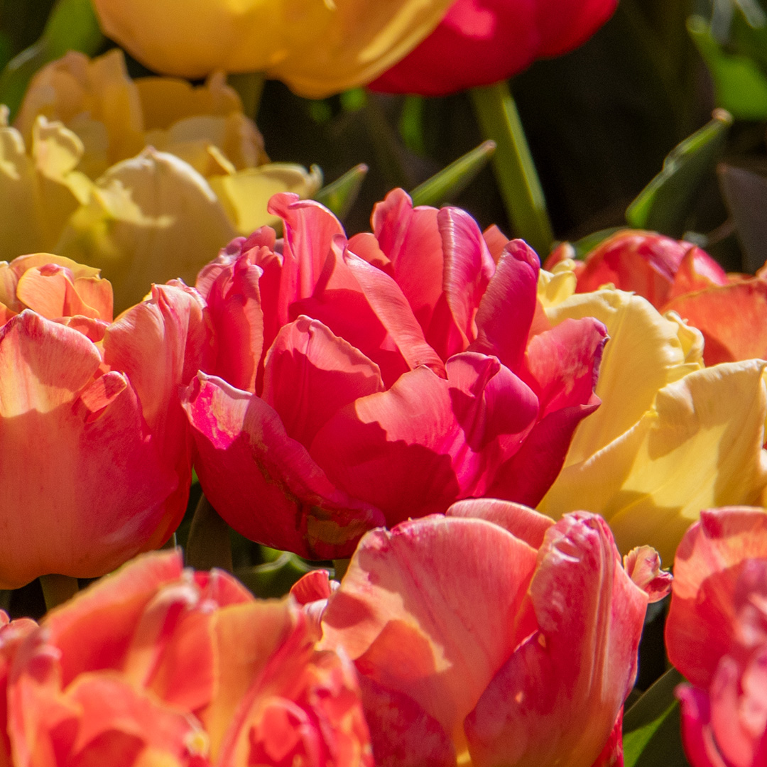 De Tulp 'Pink Symbiose' is niet zomaar een roze tulp. Ze staat bekend om haar diepe, verzadigde roze kleur die doet denken aan een zonsopgang in de vroege lente. Het is een tulp die luxe uitstraalt zonder aan kracht in te boeten—de perfecte "symbiose" tussen schoonheid en vitaliteit. De bloembladen hebben een zijdeachtige glans die het zonlicht vangt, waardoor de bloem bijna lijkt te gloeien in de border. Deze variëteit staat bekend om haar gelijkmatige groeiwijze. Dit maakt haar uiterst geschikt voor strakke tuinontwerpen en grootschalige beplantingen waarbij een "tapijt-effect" gewenst is. Zoals een echte tulp betaamt, heeft de 'Pink Symbiose' een dikke, stevige stengel die niet bezwijkt onder wind of regen. In de vaas transformeert deze tulp elke ruimte. Ze blijft lang mooi en behoudt haar vorm, wat haar een favoriet maakt voor bloemstylisten. Voor een romantische, dromerige look combineer je de 'Pink Symbiose' met witte tulpen of vergeet-mij-nietjes. Wil je een moderner statement maken? Plant ze dan tussen donkergroene bladplanten of siergrassen, zodat het felle roze er echt uitspringt.