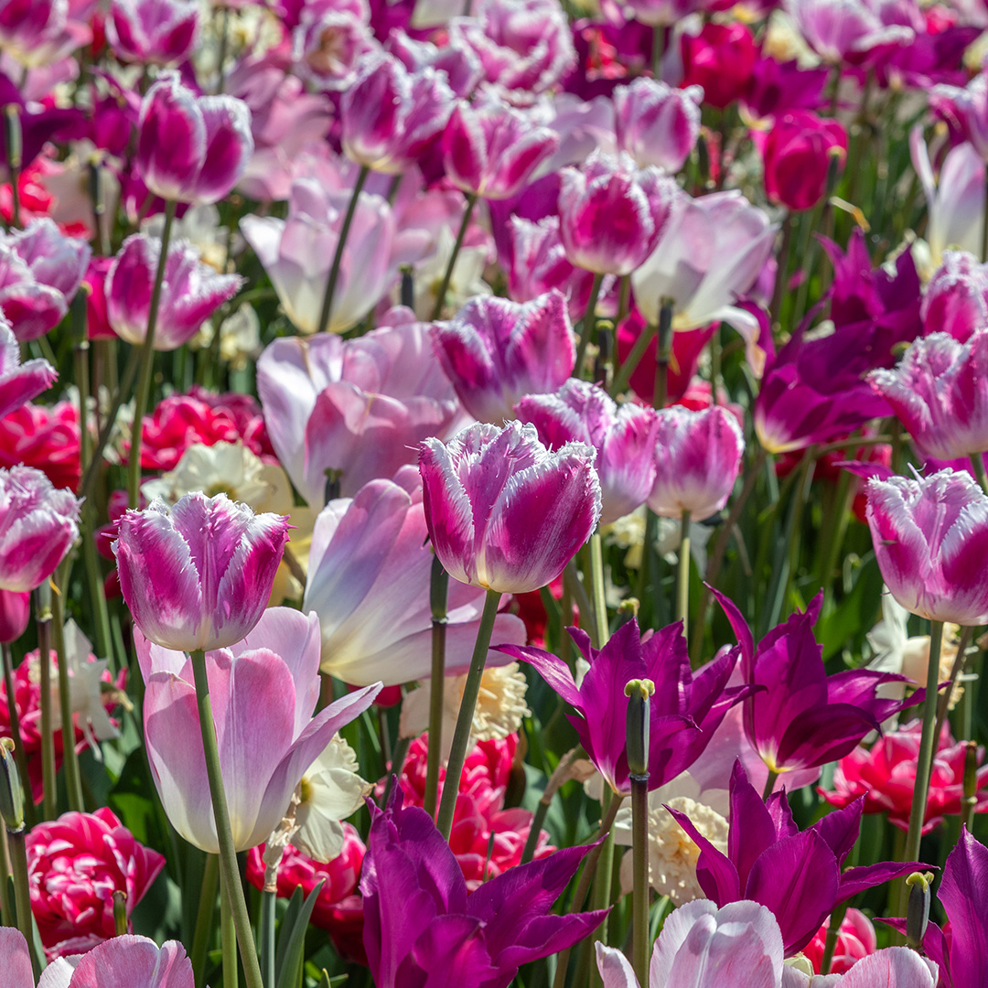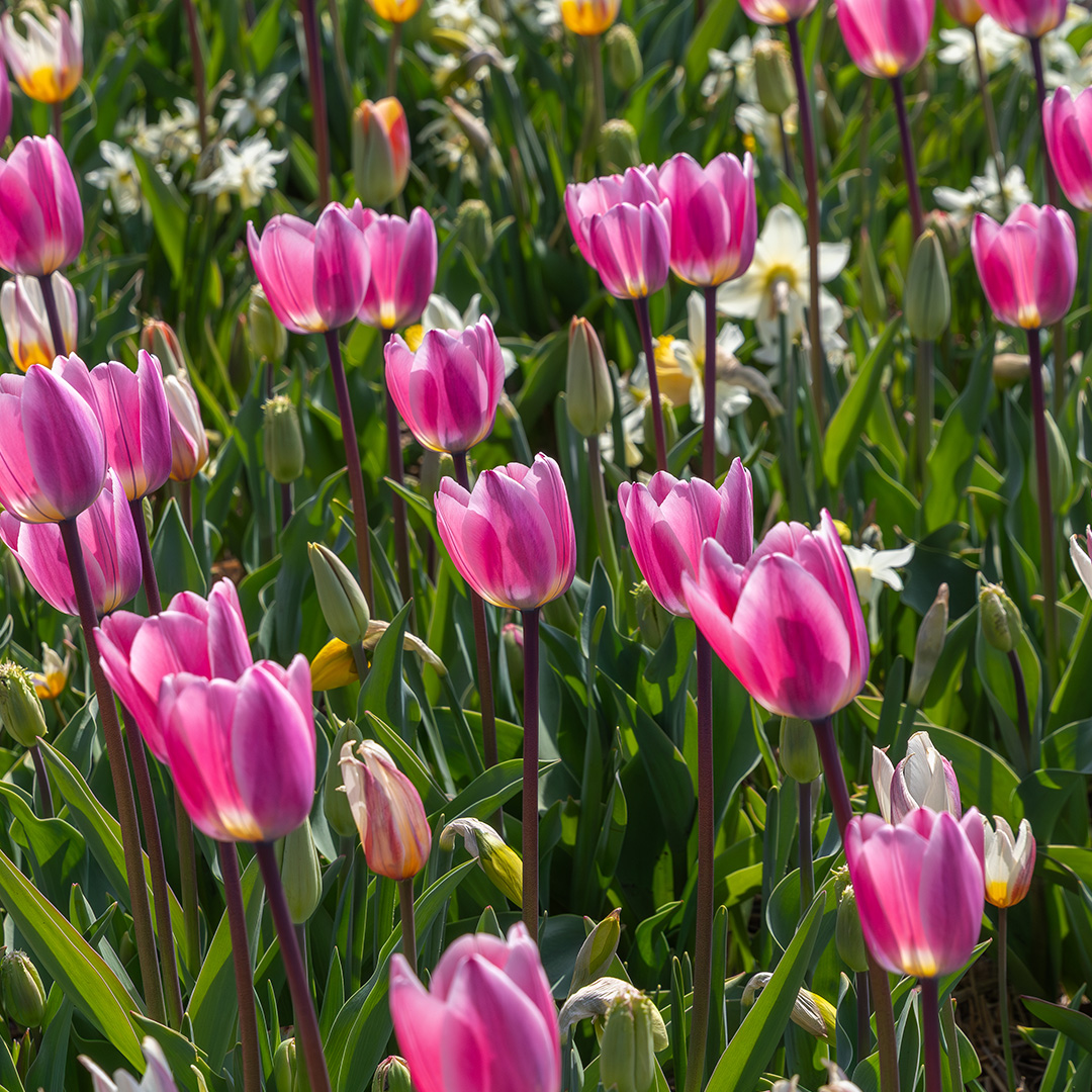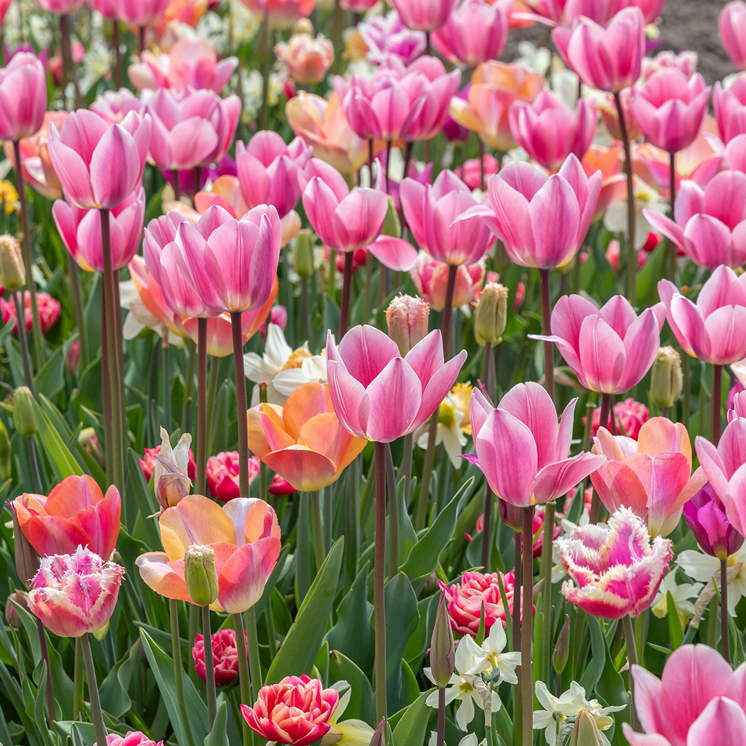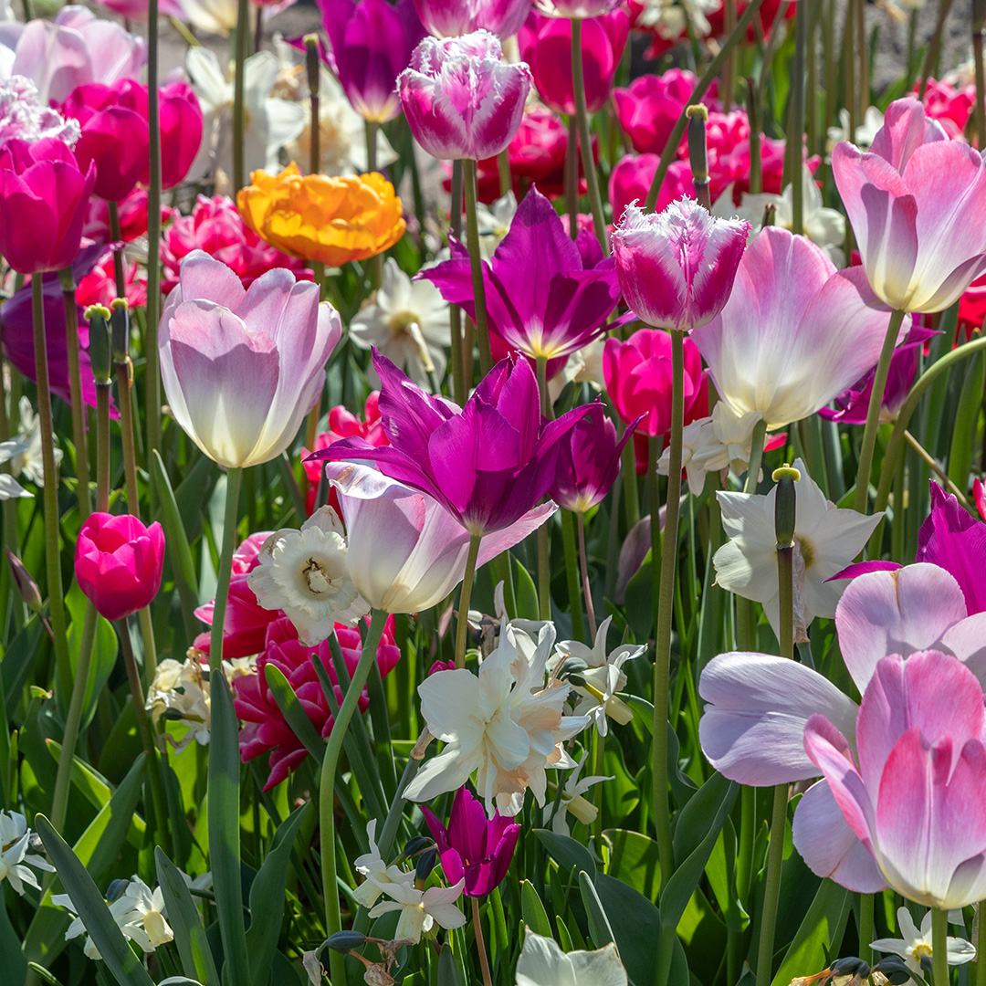 Haal de serene schoonheid van een ontwakende lente-tuin in huis met de 'Sakura' mix. Deze zorgvuldig samengestelde combinatie brengt het beste van twee werelden samen: de statige elegantie van de tulp en de vrolijke, speelse vorm van de narcis. Het resultaat is een harmonieus schouwspel van zachtroze, crème, lila en zalm. De mix varieert van zachtroze tot lila en zalm. Net als de echte Sakura (kersenbloesem) veranderen de kleuren subtiel naarmate de bloemen rijpen, wat zorgt voor een levendig effect. De geselecteerde tulpen en narcissen in deze mix zijn zo op elkaar afgestemd dat ze gelijktijdig bloeien. Geen lege plekken, maar een vol en rijkgevuld bloembed. De strakke kelken van de tulpen vormen een prachtig contrast met de fragiele kronen van de narcissen. Dit geeft de border diepte en een luxe uitstraling. Wil je je tuin transformeren in een romantisch paradijs? De 'Sakura' mix is een mooie combinatie voor wie houdt van een zachte, esthetische voorjaarstuin.