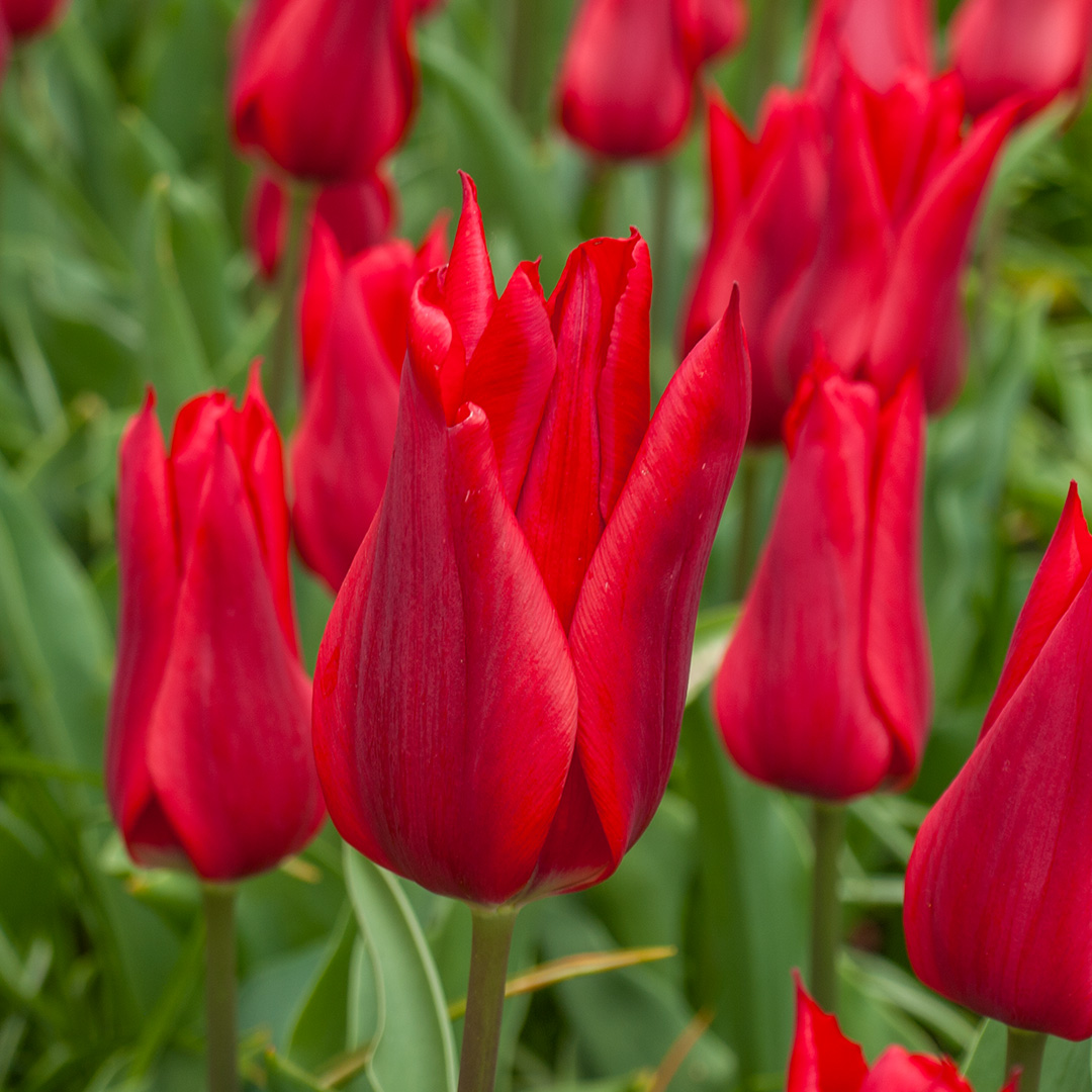 Dit zijn Tulpen met een spitse vorm en lange bloemstelen. De felste kleuren vind je bij deze soort. Door haar lange stelen zijn ze ook zeer geschikt om als snijbloem te gebruiken. Het is mogelijk dat deze soort meerdere jaren terugkomt, dit vind je terug bij de productspecificatie ‘Verwildering’. In mei geniet je van deze kleurrijke soort.